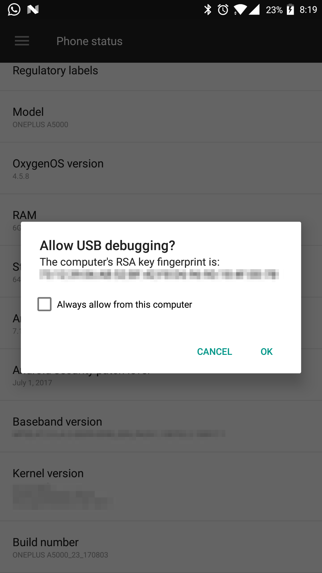 - Plug-in your mobile device to your computer; this would immediately throw an authorization prompt on it. Until you allow this, the device would be in a Pending Authorization state in the dev tools. Click on OK.