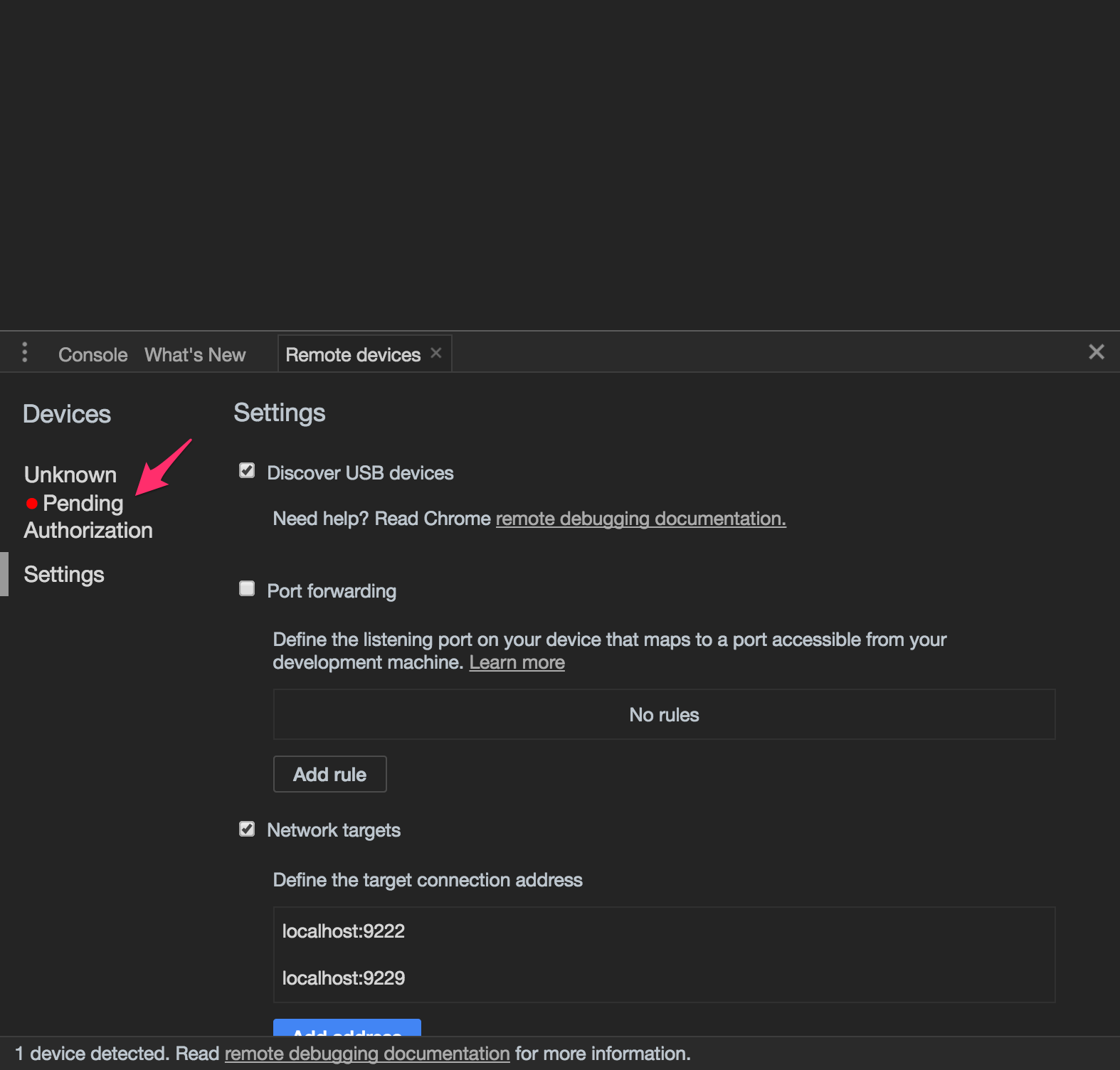- The device is now authorized and ready to go! The Chrome developer tools should now list your device name and type.