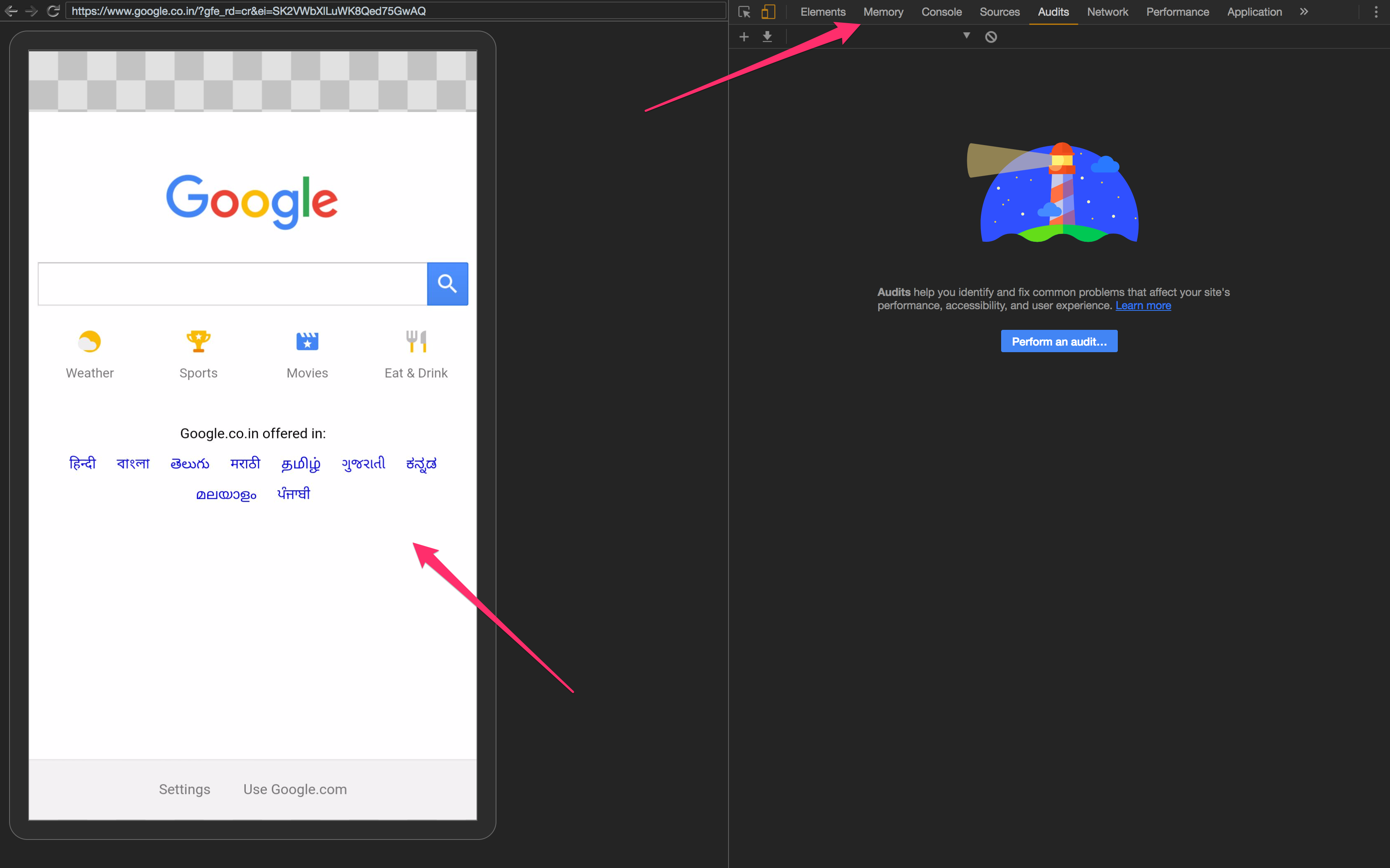 - Chrome should open up a new window, with a real-time version of your mobile browser’s tab on the left and all your regular developer tools on the right.